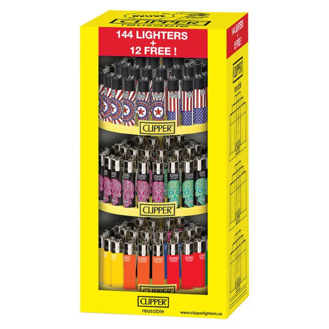 CLIPPER CAROUSEL 3 TIER 144CT + 12CT FREE LIGHTER DISPLAY