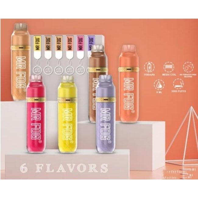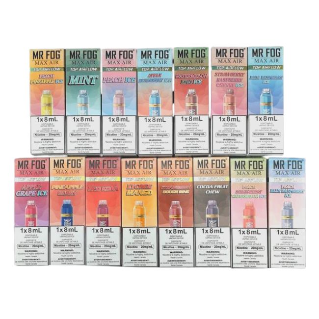 MR FOG MAX AIR DISPOSABLE VAPE Product Specifications: 1100mAh Battery Capacity 8ml E-liquid Up to 5000 puffs 5% Salt Nicotine Product Features: All-in-one System Fully Disposable Non-refillable Mesh Coil Adjustable Air Flow