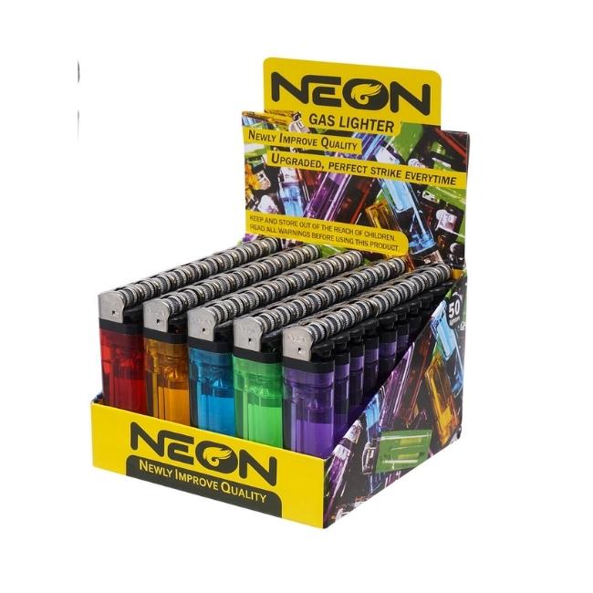 NEON LIGHTER ASSSORTED COLOR & DESIGN 50CT/ BOX