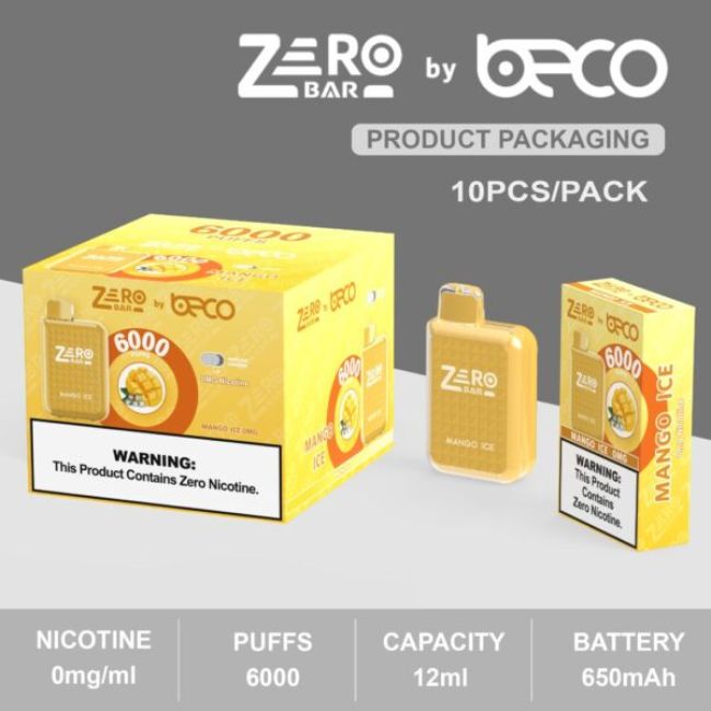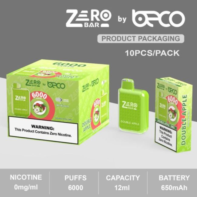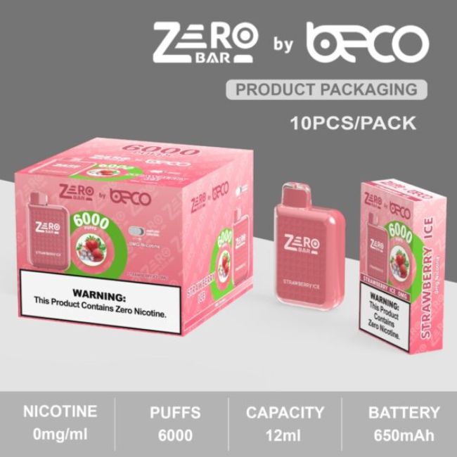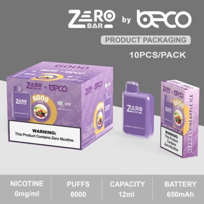Zero Bar by Beco 6000 Puffs Disposable Vape Product Specifications: Capacity – 12mL Pre-Filled E-Liquid Puffs – Up to 6000 Nicotine – 0mg Battery – 650mAh Type C Rechargeable (charger